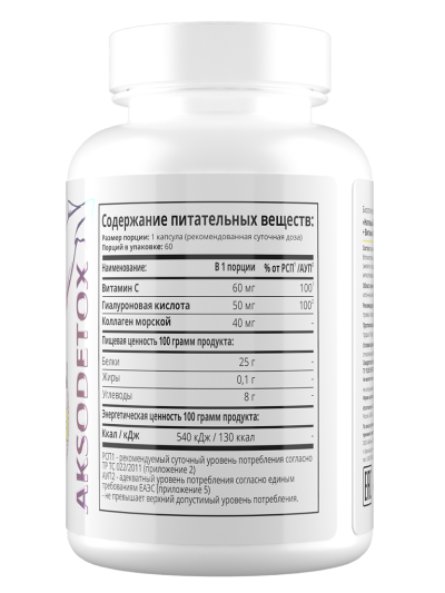 Краткий опис: Це біологічно активна добавка (БАД), яка не є лікарським засобом. Перед застосуванням рекомендується проконсультуватися з лікарем. Призначена для підтримки здоров'я шкіри, суглобів та зв'язок, а також для корекції вікових змін.