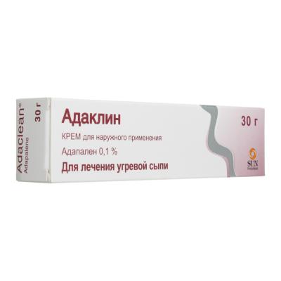 АДАКЛІН – препарат для зовнішнього застосування, що містить адапален – метаболіт ретиноїду. Він має комедонолітичну та протизапальну дію, нормалізує процеси кератинизації та диференціації епідермальних клітин. Механізм дії базується на взаємодії з гамма-рецепторами епідермісу, що сприяє зниженню "злипання" епітеліальних клітин у вивідних протоках сальних залоз та зменшенню ризику утворення мікрокомедонів.