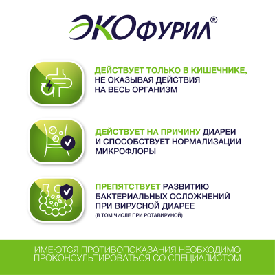 Противомікробний засіб широкого спектра дії для лікування інфекційних захворювань шлунково-кишкового тракту (кишковий антисептик), похідне нитрофурана. Високі дози забезпечують бактерицидну дію, у менших – бактеріостатичну. Активний щодо грамположних бактерій: Staphylococcus spp., Streptococcus spp.; грамнегативних бактерій: Salmonella spp., Shigella spp., Proteus spp..