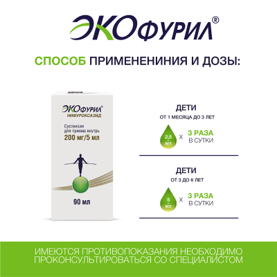 Экофурил суспензия для приема внутрь 200 мг/5 мл 90 мл 1 шт
