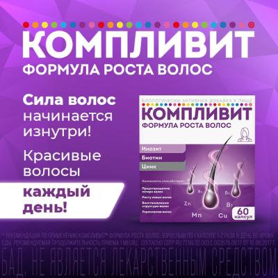 После родов волосы стали заметно хуже: тусклые, ломаются, выпадают. Поискала витамины для волос, остановилась на Компливит формула роста волос. Во-первых, отличный состав, уникальное содержание компонентов для роста и против выпадения волос. Во-вторых, легко купить. Нашла в ближайшей аптеке. Через м ... есяц приема заметила улучшения: волосы стали крепкими, упругими, блестят, заметно выросли. Довольна эффектом от этих витаминов. Продолжать применение точно буду. Ещё