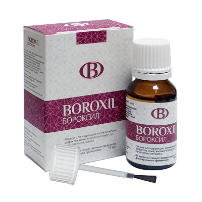 БОРОКСИЛ — косметичний лосьйон для зовнішнього застосування, розроблений для безпечного та ефективного очищення шкірних покривів від доброякісних папілом. Препарат не залишає шрамів або рубців, практично не викликає дискомфорту або болю, підходить для видалення папілом будь-якого розміру та зони ураження.