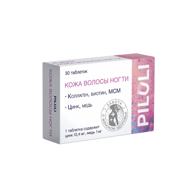 PILULI Кожа волосы ногти Коллаген Биотин МСМ таблетки массой 1200 мг 30 шт
