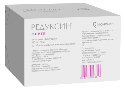 Редуксин Форте таблетки покрыт.плен.об. 850 мг+10 мг 90 шт