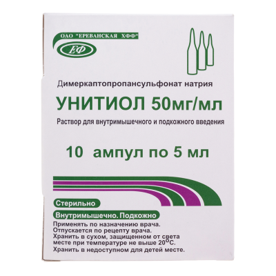Унитиол раствор для в/м и п/к введ. 50 мг/мл 5 мл амп 10 шт