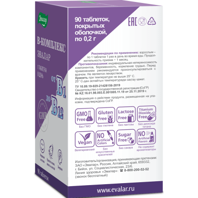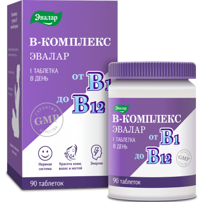 В -комплекс Эвалар/Витамины группы В таблетки покрыт.об. по 0,2 г 90 шт
